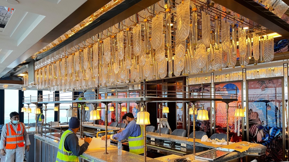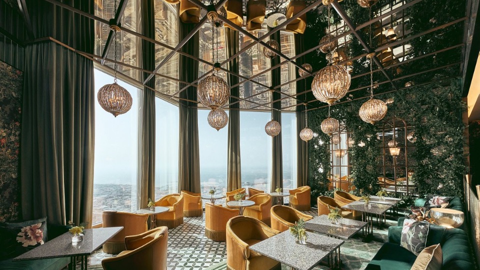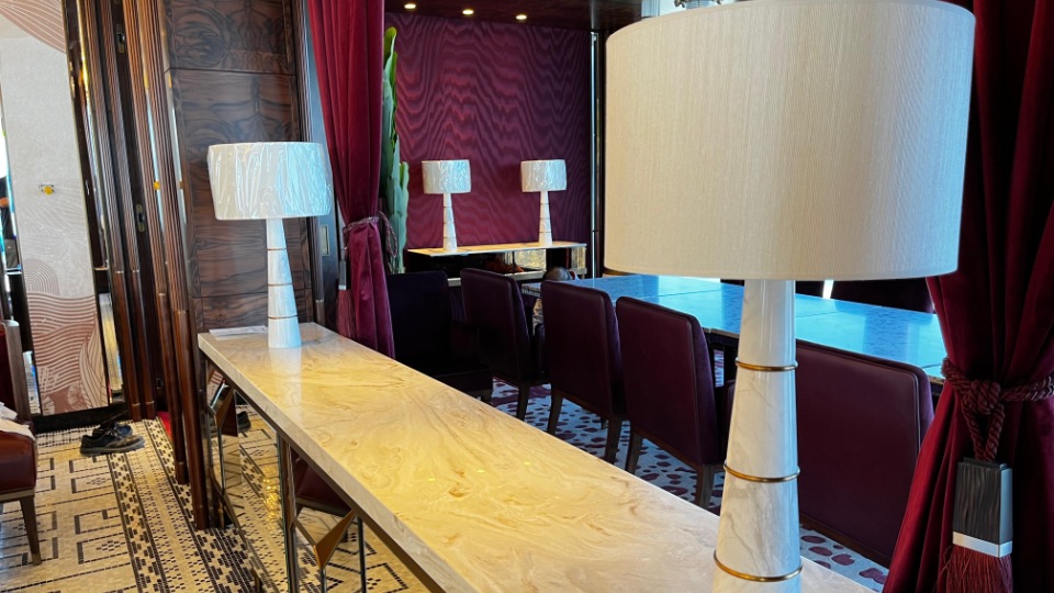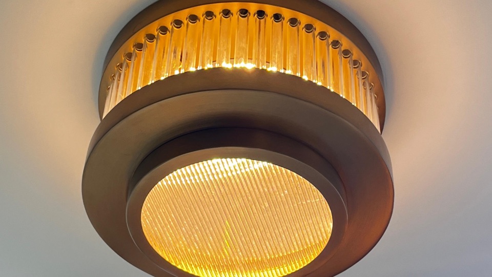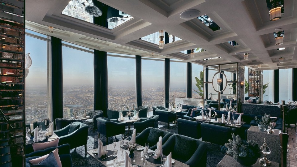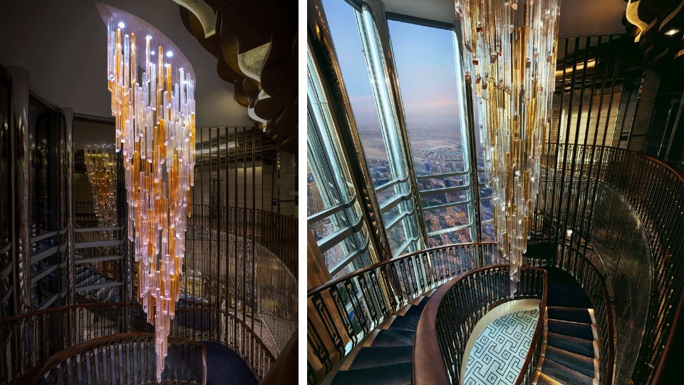 BYZANTIVM HOSPITALITY provided all the decorative lighting for the restaurant and bar areas of this prestigious project in the Burj Khalifa, Dubai. Sconces, pendants, table lamps, the monumental signature piece in the stairwell and more. All custom cast glass.